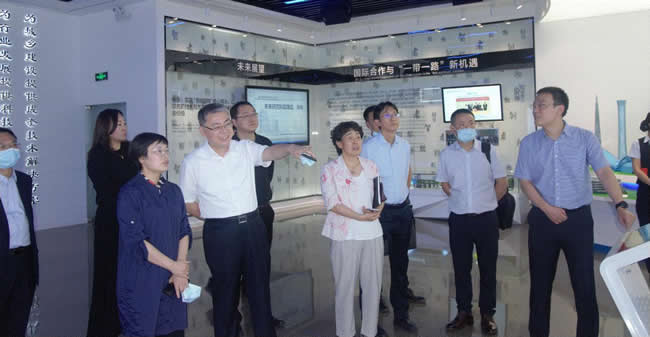 院党委王阳副书记陪同德阳市委副书记刘会英一行参观了院史馆展厅。